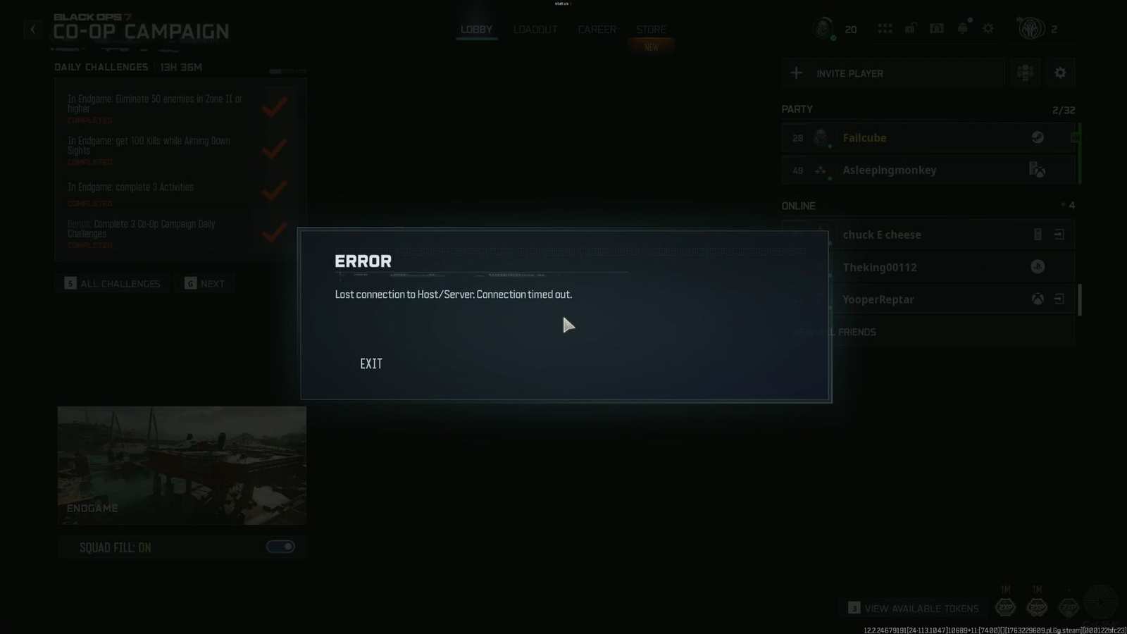 In 2025, after almost two dozen mainline Call of Duty games and two previous open-world PvE modes (DMZ and Modern Warfare Zombies), Black Ops 7 still does not protect players from crashes, server errors, or mid-session disconnects. There is no reconnecting. There is no save state. There is no safety net of any kind to protect players and the time they put into the game.