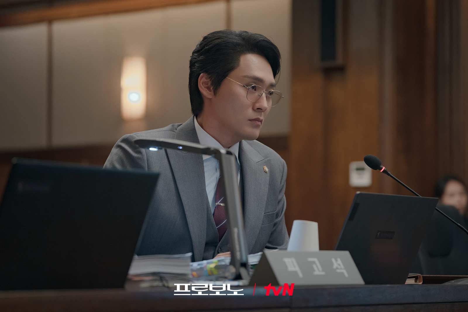 In the released stills, Woo Myung Hoon’s commanding presence in the courtroom immediately draws attention. His neatly tailored suit, focused expression, and piercing gaze—as if seeing straight through the situation—clearly reveal his fierce competitive spirit. His demeanor, which seems to heighten the tension in the courtroom, hints at his formidable nature and raises expectations for the intense legal battles to unfold in “Pro Bono.”