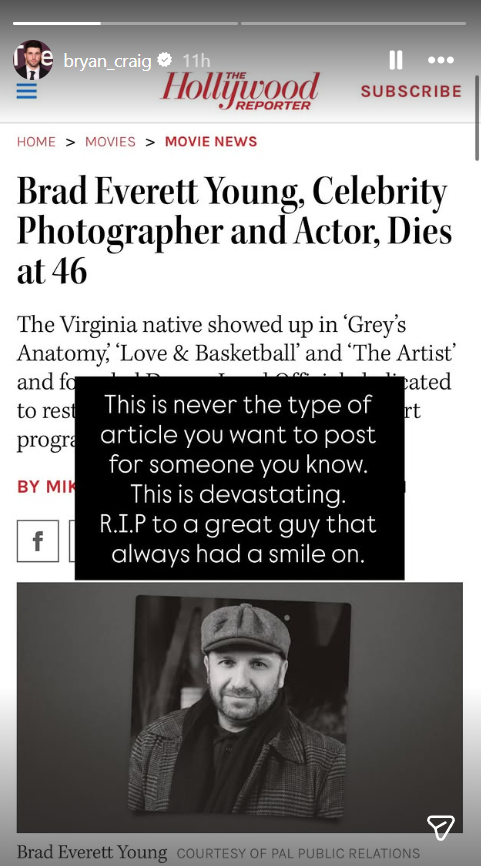 The industry mourns the loss of talented photographer and actor Brad Everett Young. He died at the age of 46 following a car crash. A familiar face at Hollywood’s most prestigious events, his photography portfolio featured in major outlets such as The Hollywood Reporter and Vanity Fair. Apart from his photography career, he also appeared in various entertainment projects, including Grey’s Anatomy, Charlie’s Angels (2000), Felicity, and more.