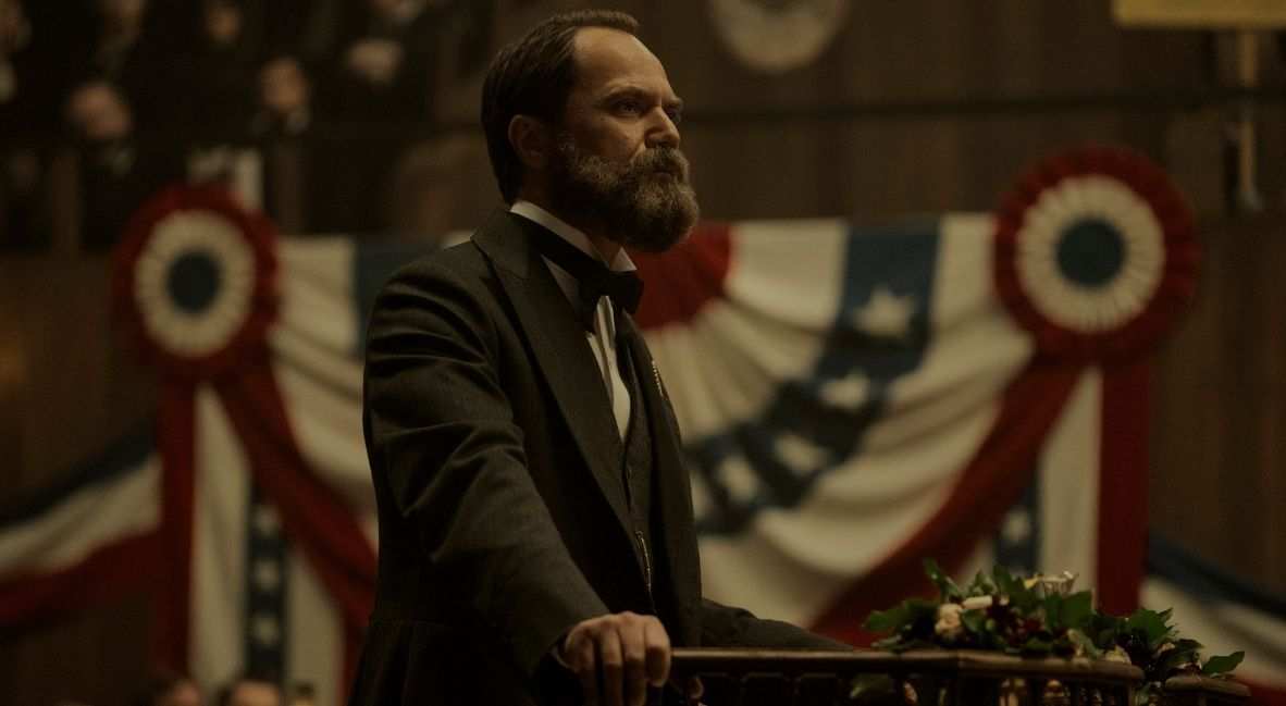 Apart from the character work, the limited series captures the time with gorgeous costumes and timely hair and make-up that transform actors we know and love into something completely different. While MacFadyn and Shannon are the core of the series, it’s Shea Whigham, Bradley Whitford, and Nick Offerman as Roscoe Conkling, James Blaine, and Chester Arthur, respectively, who show stunning transformations and highlight how much work a hairstyle does to craft a persona.