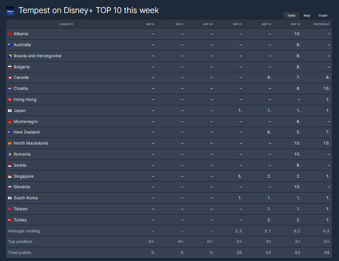 As of September 15, the K-drama ranked 3rd worldwide in the Disney+ Top 10 TV Shows category (FlixPatrol).