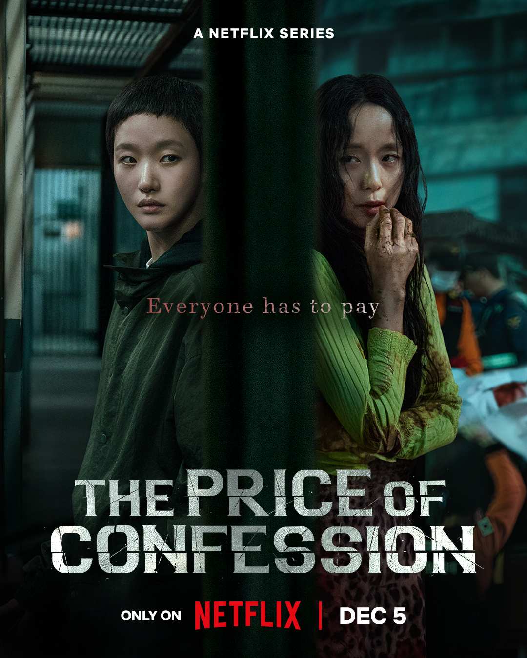 The poster’s tagline, “Everyone has to pay,” suggests unpredictable consequences for the two women who have traded confessions.